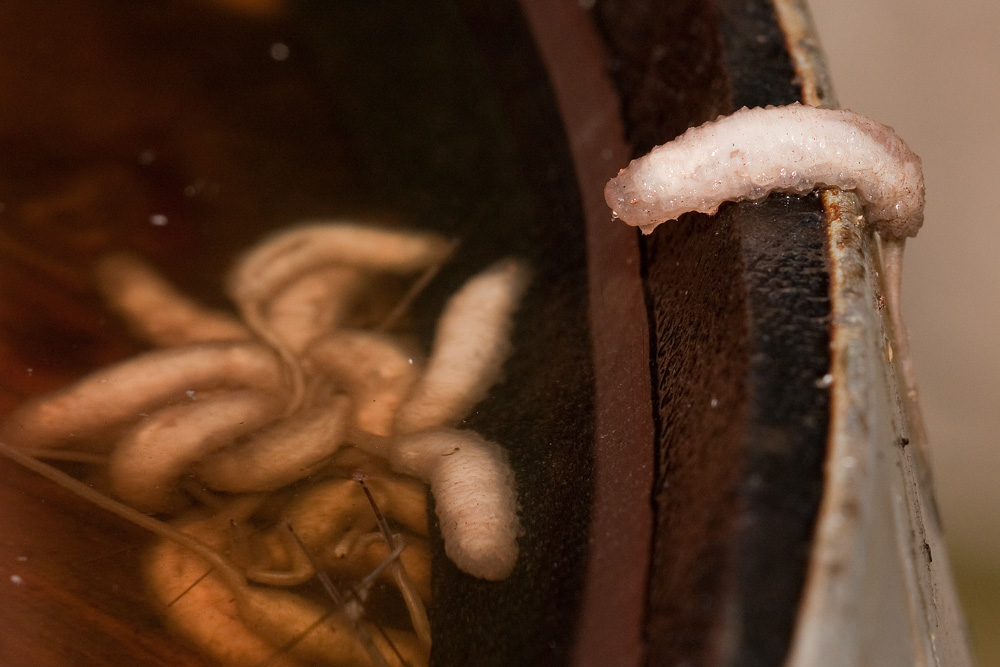 Moi Kochani, w ostatnich dniach przygotowalam tzw. gnojowki do podlewania roslin. I prosze, wczoraj zblizam sie do pojemniczkow a tam cudowny i magiczny taniec bialych larw z dlugimi ogonami. Pierwszy raz widzialam takie larwy i dzis wiem, ze to