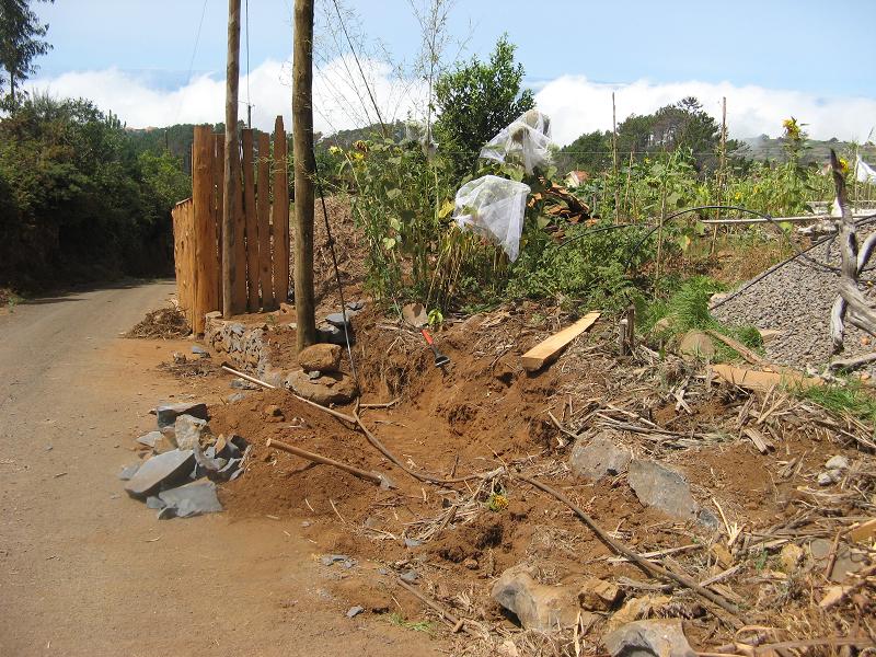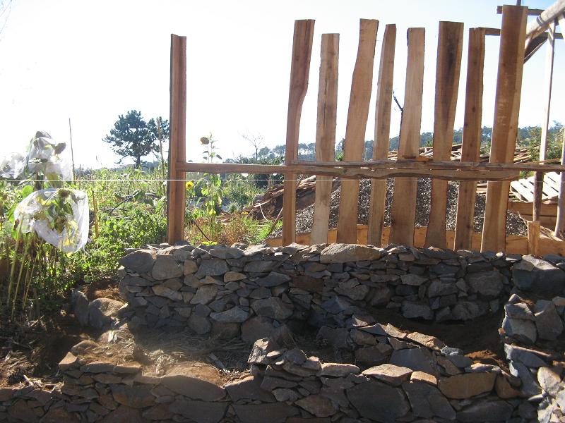 Tutaj zdjecia z aktualnie prowadzonych prac, polaczenia suchego muru z drewnem i pergola na rosliny pnace. W ten sposob powstaje naturalne schronienie dla jaszczurek, ktore moga odnalezc suche, cieple miejsce miedzy kamieniami.