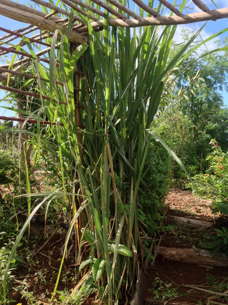 Trzcine cukrowa, ktora osiagla wysokosc ponad 2 m.
